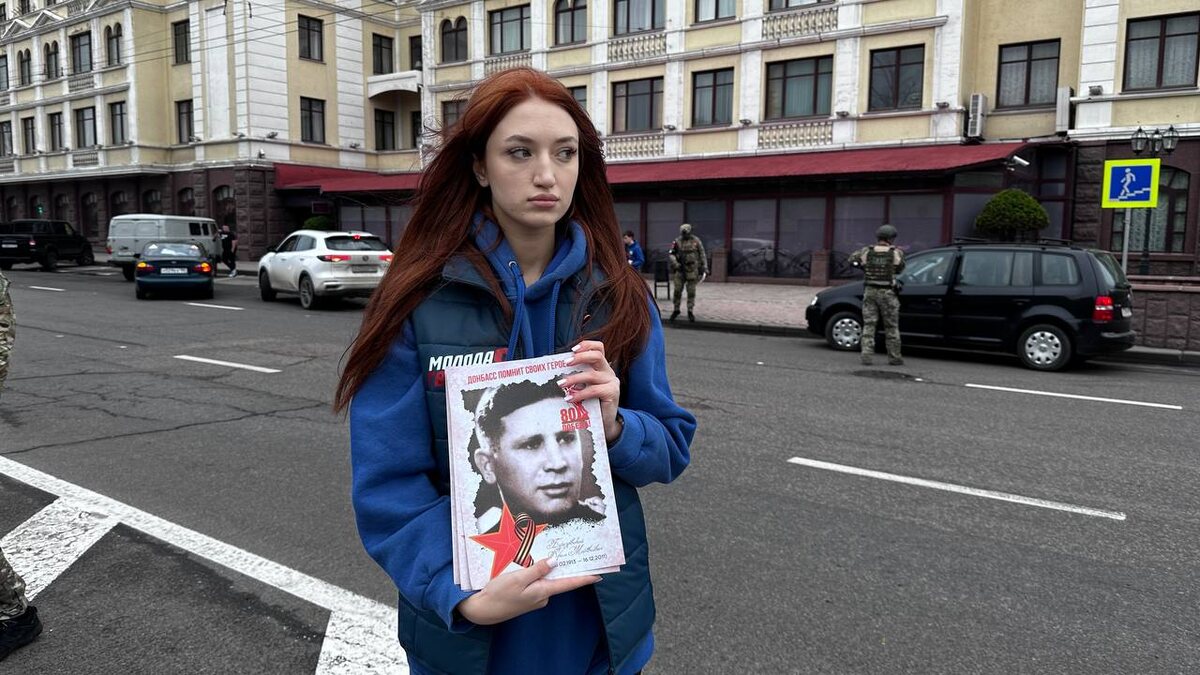 🎗️ На площади Ленина молодежь с военной комендатурой и военной автоинспекцией раздают водителям портреты Героев ВОВ, родившихся на нашей земле.