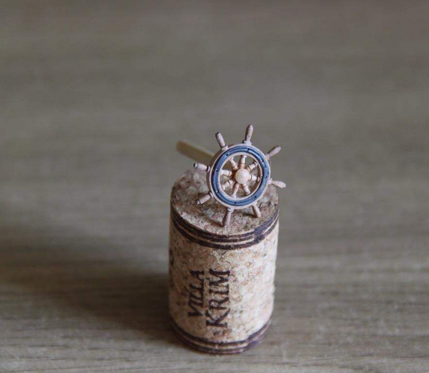 У рулевого колеса помимо наличия, скажем так, функционально обусловленных элементов, к которым следует отнести ступицу, спицы с рукоятями на концах, а также его обод, почти постоянно присутствует деталь с выраженным конструктивным функционалом. Я говорю о металлических накладках на ободе штурвала. Они кроме обеспечения изделию дополнительной прочности часто становятся еще его украшением. И именно последнее обстоятельство для моделизма имеет существенно большее значение. Поскольку, по понятным причинам, повышение прочности в данном случае особого смысла не имеет. Вот о том, как сделать эту деталь так, чтобы она не испортила внешний вид штурвала, и пойдет речь в этой публикации.