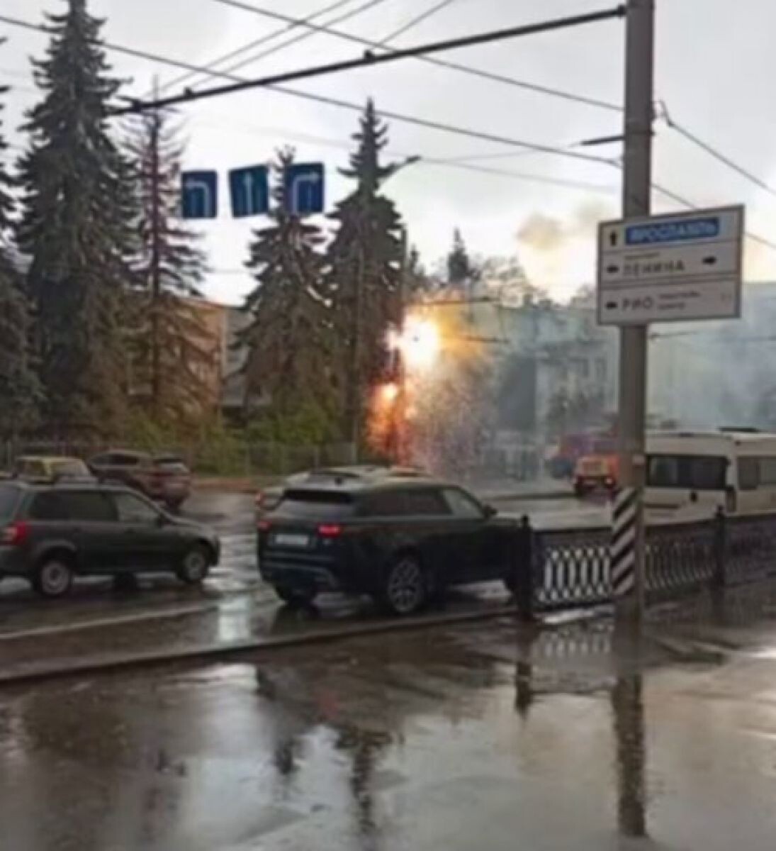 В Иванове на глазах у прохожих загорелся светофор во время грозы