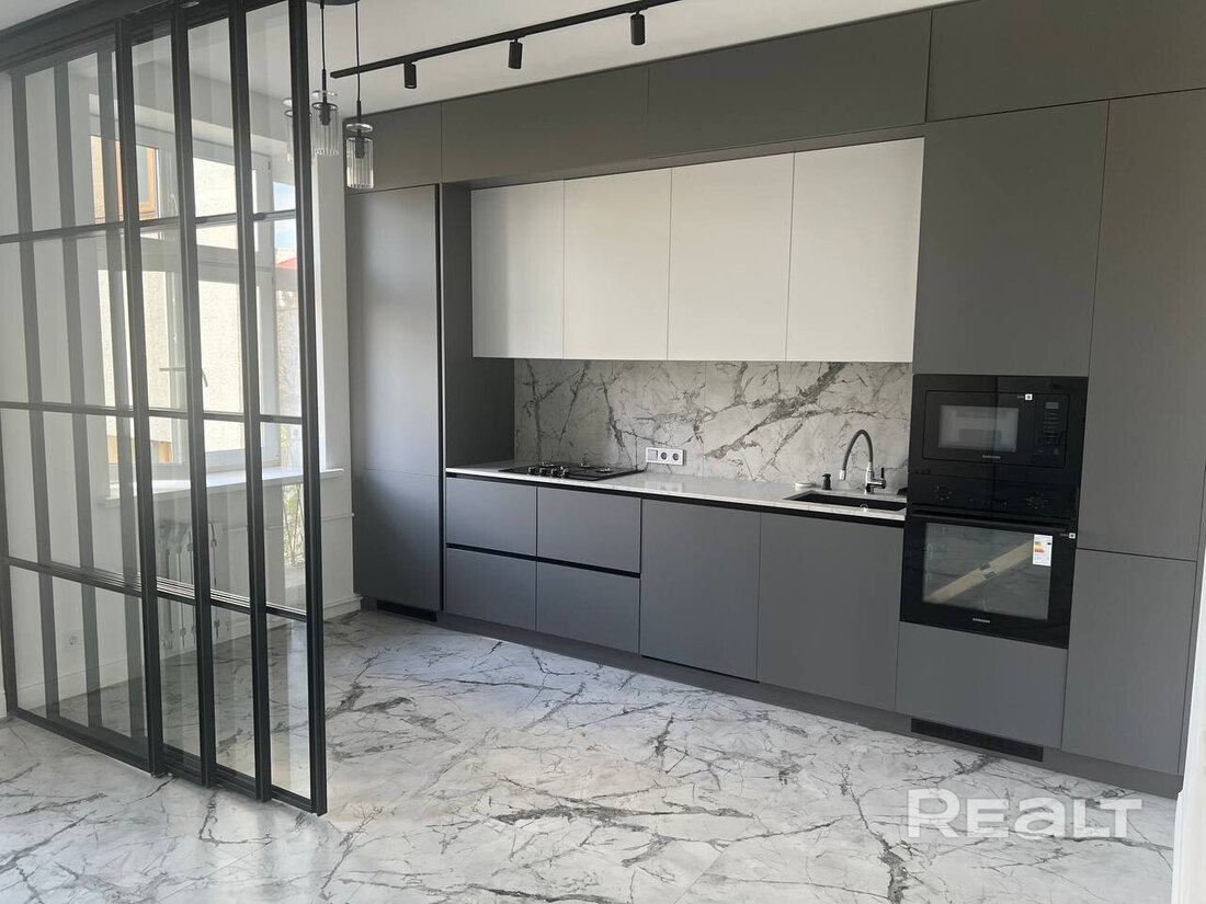 В продаже на улице Карла Маркса появилась сталинка со свежим ремонтом. По фотографиям видно, что его только-только закончили, а с бытовой техники еще даже не сняли защитные пленки. Новым хозяевам останется докупить немного мебели и декора. Хотя при желании заселиться можно уже сразу после покупки. Смотрим двушку с квадратом дороже 2 700 долларов. Квартира находится на пятом этаже пятиэтажного дома 1950 года постройки. Его адрес — Маркса, 8. Это здание, в котором в прошлом году открылся реcторан Amo и много лет работает Cafe de Paris. Общая площадь квартиры — 55 квадратов, жилая — 42. У входа установлены шкафы с различными системами хранения. Кухня отделена от гостиной стеклянной перегородкой. На полу во всей квартире лежит плитка, стены выкрашены в белый цвет. В гостиной есть выход на балкон. В совмещенном санузле установлены и ванна, и душевая. Есть стиральная и сушильная машины.