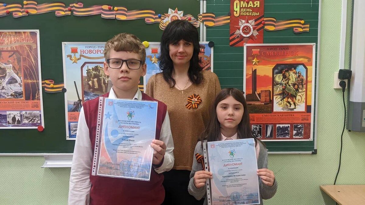 Дорогие друзья! С радостью делимся замечательной новостью — наши ученики стали дипломантами Московского фестиваля "Таланты без границ"! Поздравляем с этим заслуженным успехом: ⤵️ - Ивана У. из 3 "А" класса, классный руководитель Шевченко Татьяна Евгеньевна - Владиславу К. из 3 "Б" класса, классный руководитель Матвеева Ольга Ивановна Ребята выступили в номинации "Художественное слово", прочитав проникновенные произведения о Великой Отечественной войне: ⤵️ 🔹Иван прочитал отрывок из поэмы А. Т. Твардовского "Василий Тёркин", 🔹Владислава прочитала стихотворение В. Степанова "Рассказ ветерана". Их выступления были искренними и трогательными, что не оставило равнодушным ни одного слушателя. Особая благодарность учителю-логопеду Тубе Наталии Владимировне, которая была не только вдохновителем, но и поддержкой на всём пути подготовки! Благодаря её труду и заботе наши ребята смогли раскрыть свои таланты и достойно представить школу на конкурсе. 💫 Гордимся Вами и желаем новых творче