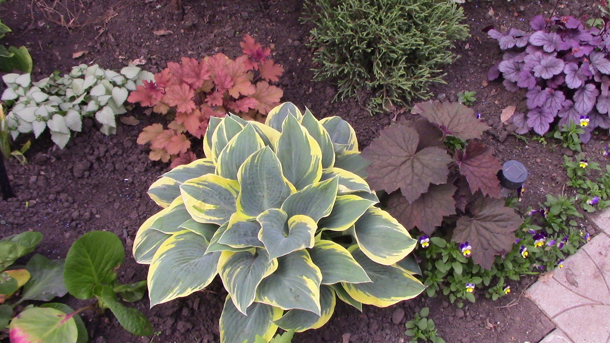 Декоративная окраска, к сожалению, далеко не всегда выдерживает условия тени. Особенно это касается желтолистных и желто-пестрых форм. Большинство этих растений цветут так же красиво, украшая теневой уголок нежными бутонами. Но именно их листья обеспечивают длительную декоративность теневой клумбы, для тени лучше выбирать зеленые и голубые сорта. Благодаря такому многообразию можно создавать декоративные композиции исключительно из хост. Я люблю хосту сажать в компании гейхер, брунер и других пестролистных тенелюбивых растений. Также хорошо растет хоста в кашпо.