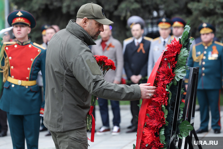Церемония прошла у памятника маршалу Георгию Жукову Фото: Размик Закарян © URA.RU В Екатеринбурге первые лица региона и города возложили цветы к памятнику маршалу Советского Союза Георгию Жукову в Екатеринбурге — давняя традиция истеблишмента в канун Дня Победы. В церемонии участвовал полпред президента в УрФО Артем Жога, передает корреспондент URA.RU. Там также присутствовали врио командующего войсками ЦВО генерал-лейтенант Дмитрий Глушенков, врио свердловского губернатора Денис Паслер, его легендарный предшественник Эдуард Россель, председатель заксобрания Людмила Бабушкина, мэр Алексей Орлов, митрополит Екатеринбургский и Верхотурский Евгений (Кульберг), спикер гордумы Анна Гурарий, а также замы губернатора, в том числе Татьяна Савинова, новый министр здравоохранения, и некоторые другие члены правительства. Церемония приурочена к 80-летию Победы в Великой Отечественной войне. Георгий Жуков — четырежды Герой Советского Союза. С 1948 по 1953 год занимал должность командующего войскам
