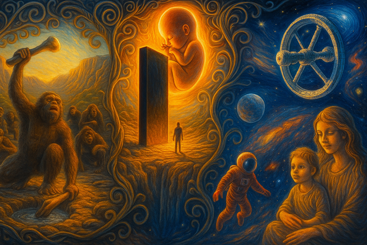 Финальная сцена: триумф жестокости. Кость, брошенная в небо, превращается в космический корабль. Куда нас ведёт этот бесконечный вояж? Что мы ищем — в себе или за пределами?