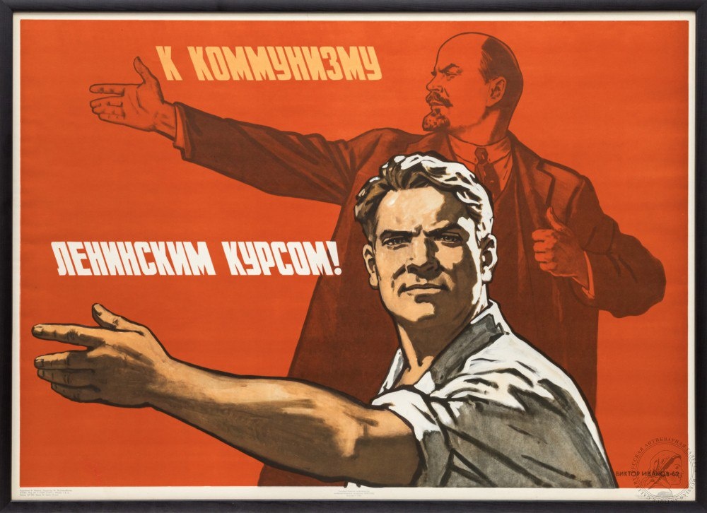 Русская антикварная галерея Сайт: rus-gal.ru #Иванов В.С. - #Плакат «К коммунизму ленинским курсом!» #СССР, 1963 год. Бумага, офсетная печать. 68 Х 95 см #Соцреализм, #Агитационный_жанр, #Агитплакат Подробнее: https://rus-gal.ru/works/k-kommunizmu-leninskim-kursom-6902/