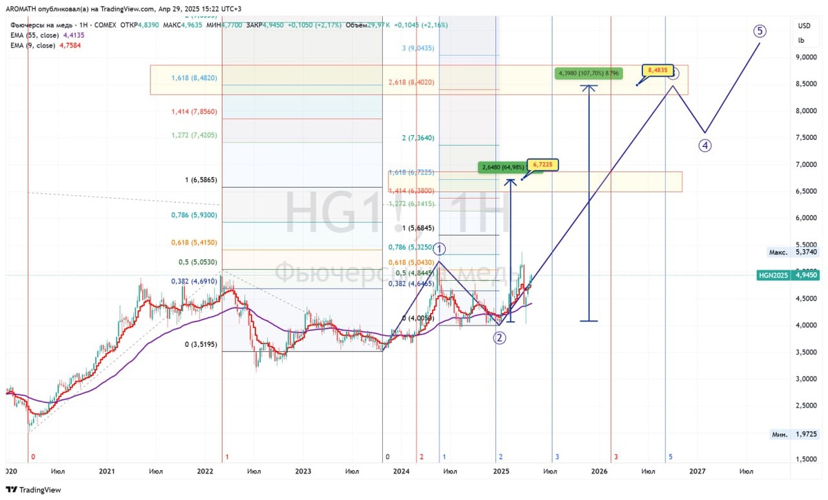 Сырьевые тренды: медь, нефть и глобальные рынки в фокусе 🍳 Как не крути, а медь поехала за золотом на удвоение согласно всем моим прошлым и давнишним планам AROMATH💤 Медь - это промышленный металл, имеет корреляцию с развивающимися рынками Emerging Markets, например, с нашим индексом РТС, отражает настроения мировых рынков. Цепочка упрощенно выглядит так: Рост сырья - рост развивающихся рынков - спад доллара - рост акций, крипты и тотальный Risk-On. Причины этого могут быть разные, рассказывал доводы на БМВ Аромата от 17.04.2025 подробно. Все так и есть 💯 В рубрике #макротренды и #макроэкономика в канале Aromath💤 тайм-фреймы в основном также чуть больше обычных, но все же приближенные к нашей реальности. У кого горизонт планирования неделя или "еще вчера, прям сейчас и сразу" - увы, не подойдет. То есть это то, что вот уже есть и будет сейчас в ближайшие полгода, год и даже два года. Это все называется среднесрочно. Примеры ранее в газе TTF в Европе, в #GAZP Газпром и #NVTK Но