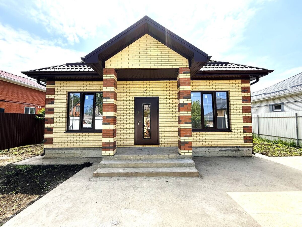 🔥В ПРОДАЖЕ! 🏡Новый готовый коттедж в микрорайоне Ейское шоссе, СНТ "Автомобилист", Прикубанский округ города Краснодара, прописка городская. 📍Отличное местоположение: до гипермаркета «Магнит» — 5 минут на автомобиле, школьный автобус, школа № 50, поликлиника — в мкр. Молодежный. ◾️Дом общей площадью 105 кв.м современной планировки: крыльцо, холл 9 кв.м, гардеробная, 5,2 кв.м, три изолированные спальни, одна из которых — мастер-спальня, кухня-гостиная 27,6 кв.м с выходом на задний двор, совмещенный санузел 5,8 кв.м. 💧Коммуникации: канализация — септик 12 м3, вода — скважина 30 м, свет — 10 кВт, газ — по меже, подключение самостоятельно. ◾️В доме — предчистовая отделка. 🌳Дом расположен на земельном участке четыре сотки земли, участок ровный, правильной формы, ухоженный, сохранены деревья и кустарники, огорожен по периметру забором, откатные ворота, калитка, по периметру дома — бетонная отмостка, площадка под автомобиль. ❗️Дом готов. ❗️Льготная ипотека с удорожанием стоимости