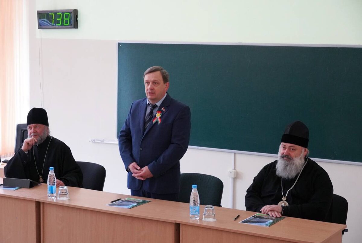 📌8 мая в Полесском государственном университете прошла встреча студентов и сотрудников с епископом Георгием и протоиереем Федором Повным
