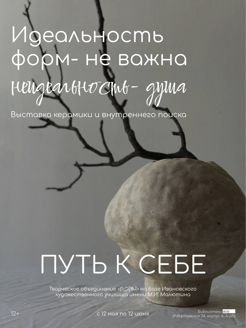 ☯️В библиотеке энергоуниверситета открылась выставка неидеальных форм Открыть пути к познанию себя, изучить неидеальные формы, расставить свои акценты можно на новой выставке (12+) в библиотеке энергоуниверситета (ул. Рабфаковская, 34, корпус «А»). На выставке будут представлены керамическая посуда и интерьерная керамика, созданная участниками творческого объединения «Форма». Участники уверены, что созидать красоту и проявлять себя творчески может абсолютно каждый человек, независимо от возраста, образования или опыта в той или иной художественной сфере. «Это выставка без границ, шаблонов и правил. Это неидеальные, но искренние и самобытные работы», — рассказывают организаторы выставки. Заявки на посещение открытия и выставки можно прислать в группе библиотеки (https://vk.com/biblio_ispu), в ТГ-канале (https://t.me/ispu_library), по телефонам 8 920 34 24 449, 26-97-40.