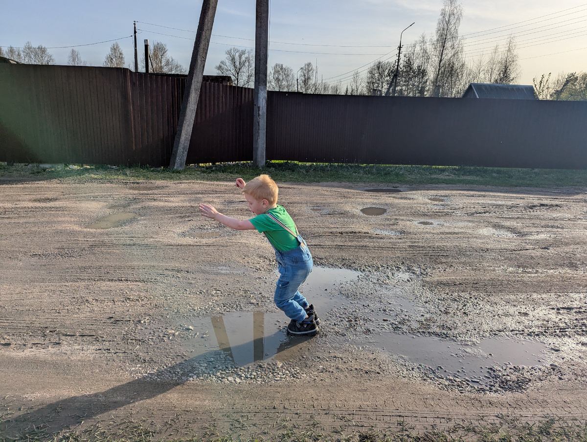 Обычно Лёня учится у котов - сидеть в коробках, путаться под ногами, лазить на подоконники. Но тут для разнообразия он решил поучиться у свиней. Опять же, для разнообразия - у нарисованных. Сделав очередной круг по детям друзей у нам вернулся набор игрушек из мультика "свинка пеппа". Яна уронила скупую подростковую слезу над прошедшим детством и поставила лене соответствующий мультик. Мультик оказался простым, понятным и леня некоторое время в нем зависал, усвоив из этого некоторый набор истин: Не знаю, как так получилось, мультик демонстрирует прямо противоположную модель: Пеппа и ее брат Джордж вечно в них сидят. При этом Лёня до мультика и сам ни одной лужи не пропускал, а в сельской местности с дефицитом асфальта лужа = грязь. Я думала, Лёня утвердится в своем поведении, но он, почему-то, внезапно понял понятие грязи и теперь старается не очень пачкаться. Если всё-таки залезет куда - начинает переживать, мы утешаем Лёню словами из мультика: "это всего лишь грязь!" Братишке Джорд