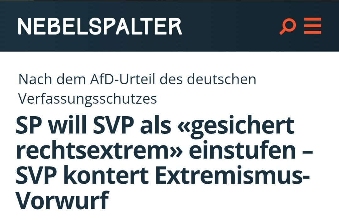 π Π‘ΠΊΡΡΠ½ΠΎ Π±ΡΠ»ΠΎ Π² Π¨Π²Π΅ΠΉΡΠ°ΡΠΈΠΈ ΠΊΠΎΠΌΡ-ΡΠΎ. Π’ΠΎΠ²Π°ΡΠΈΡ ΠΠ΅ΡΠΌΡΡ ΠΊΠ°ΠΊ Π²ΡΠ΅Π³Π΄Π° Π² ΡΠ΄Π°ΡΠ΅ π«‘ " Π‘ΠΎΠΏΡΠ΅Π΄ΡΠ΅Π΄Π°ΡΠ΅Π»ΠΈ ΡΠ²Π΅ΠΉΡΠ°ΡΡΠΊΠΎΠ³ΠΎ ΠΎΡΠ΄Π΅Π»Π΅Π½ΠΈΡ SP Π‘Π΅Π΄ΡΠΈΠΊ ΠΠ΅ΡΠΌΡΡ ΠΈ ΠΠ°ΡΡΠ΅Π° ΠΠ΅ΠΉΠ΅Ρ ΠΏΡΠ°ΠΊΡΠΈΡΠ΅ΡΠΊΠΈ Π½Π΅ Π²ΠΈΠ΄ΡΡ ΡΠ°Π·Π½ΠΈΡΡ ΠΌΠ΅ΠΆΠ΄Ρ "ΠΠ»ΡΡΠ΅ΡΠ½Π°ΡΠΈΠ²ΠΎΠΉ Π΄Π»Ρ ΠΠ΅ΡΠΌΠ°Π½ΠΈΠΈ" (AfD) ΠΈ SVP. "ΠΠ½ΠΈ ΠΎΠ±Π΅ ΠΏΡΠΈΠ½Π°Π΄Π»Π΅ΠΆΠ°Ρ ΠΊ ΡΠ°ΠΌΠΎΠΌΡ ΠΊΡΠ°ΠΉΠ½Π΅ΠΌΡ ΠΊΡΡΠ³Ρ ΠΏΡΠ°Π²ΡΡ