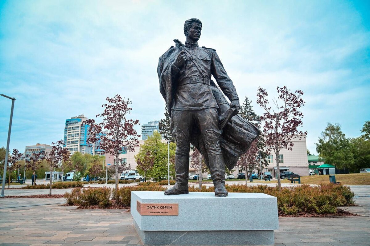 В ответ на пост 📸◽️◽️ Кадры с открытия памятника татарскому поэту-фронтовику Фатиху Кариму В мероприятии приняли участие Раис Татарстана Рустам Минниханов, Государственный Советник РТ Минтимер Шаймиев, министр культуры РТ Ирада Аюпова, представители общественности. @tatmediaofficial