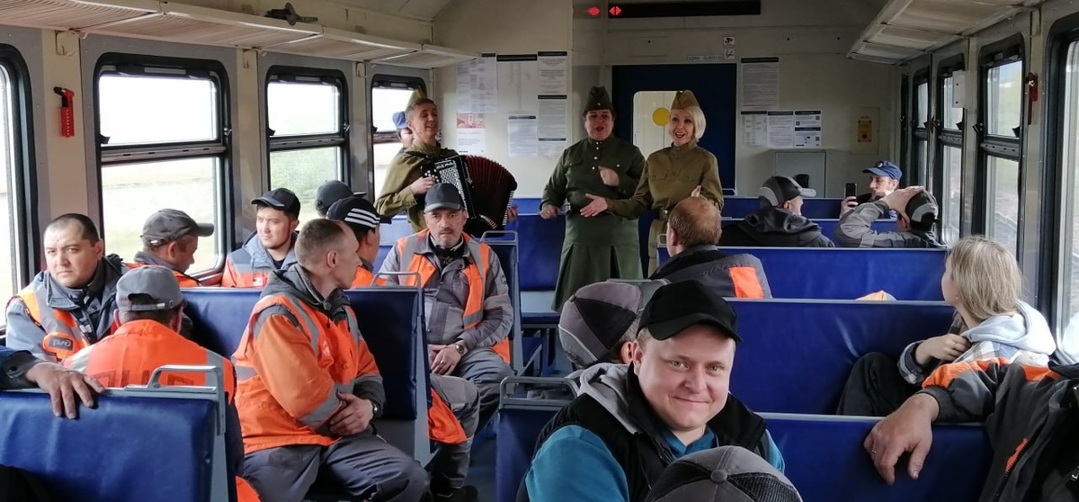 π ΠΠ»Ρ ΠΏΠ°ΡΡΠ°ΠΆΠΈΡΠΎΠ² ΡΠ»Π΅ΠΊΡΡΠΎΠΏΠΎΠ΅Π·Π΄Π° ΠΠ±Π°ΠΊΠ°Π½ β ΠΠΎΡΡΡΠ½ΠΈΠΊΠΎΠ²ΠΎ ΠΆΠ΅Π»Π΅Π·Π½ΠΎΠ΄ΠΎΡΠΎΠΆΠ½ΠΈΠΊΠΈ ΠΎΡΠ³Π°Π½ΠΈΠ·ΠΎΠ²Π°Π»ΠΈ ΡΠ΅ΠΌΠ°ΡΠΈΡΠ΅ΡΠΊΠΈΠΉ ΡΠ΅ΡΡΠΎ-ΠΊΠΎΠ½ΡΠ΅ΡΡ Π² ΡΠ΅ΡΡΡ 80-Π»Π΅ΡΠΈΡ ΠΠ΅Π»ΠΈΠΊΠΎΠΉ ΠΠΎΠ±Π΅Π΄Ρ. π ΠΠ° Π½Π΅ΡΠΊΠΎΠ»ΡΠΊΠΎ ΡΠ°ΡΠΎΠ² Π²Π°Π³ΠΎΠ½Ρ ΡΠ»Π΅ΠΊΡΡΠΈΡΠΊΠΈ ΠΏΡΠ΅Π²ΡΠ°ΡΠΈΠ»ΠΈΡΡ Π² ΡΡΠ΅Π½ΠΈΡΠ΅ΡΠΊΡΡ ΠΏΠ»ΠΎΡΠ°Π΄ΠΊΡ, Π³Π΄Π΅ Π°ΡΡΠΈΡΡΡ Π² ΠΎΠ±ΡΠ°Π·Π΅ ΡΡΠΎΠ½ΡΠΎΠ²ΠΎΠΉ Π°Π³ΠΈΡΠ±ΡΠΈΠ³Π°Π΄Ρ Π½Π°ΠΏΠΎΠΌΠΈΠ½Π°Π»ΠΈ ΠΎ ΠΌΡΠ·ΡΠΊΠ°Π»ΡΠ½ΡΡ