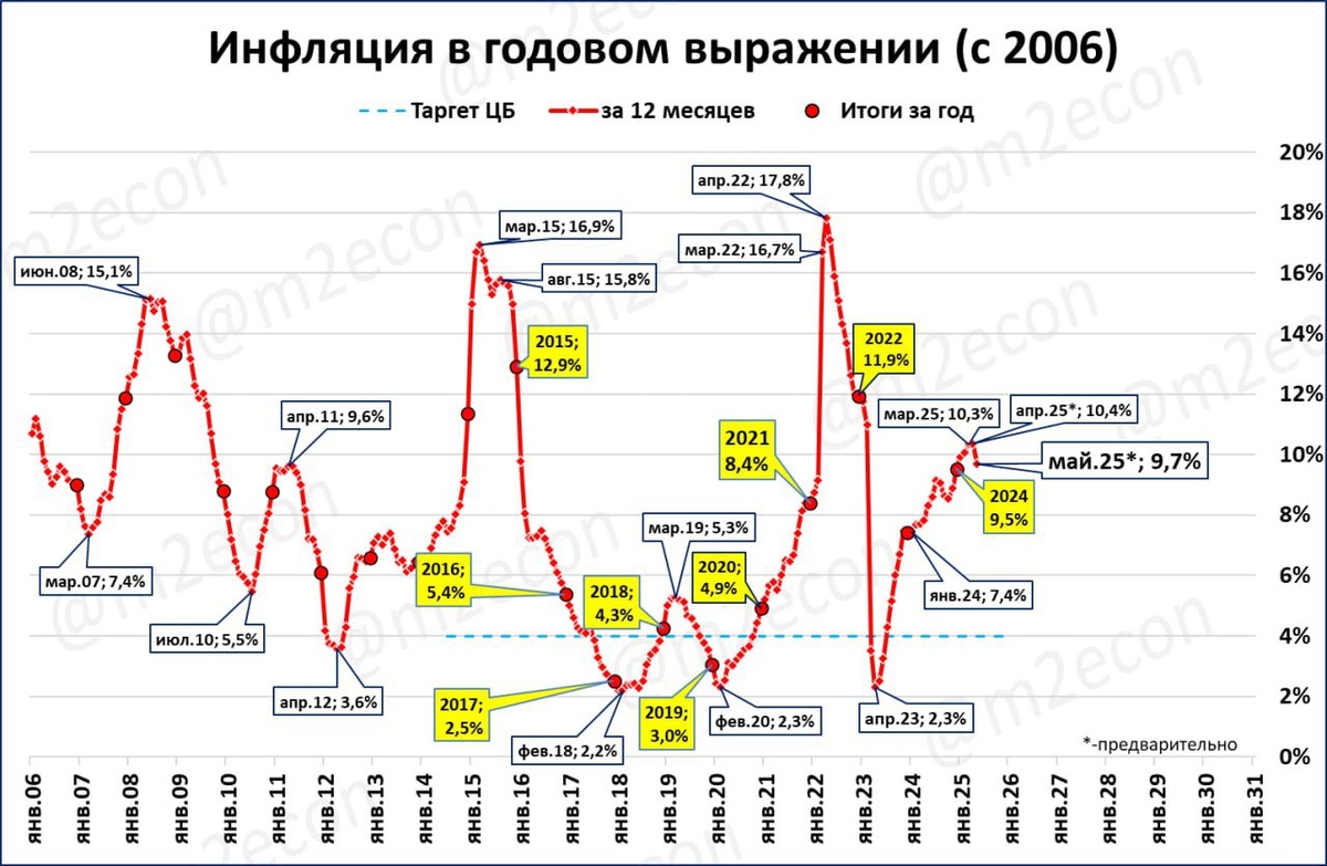Вчерашние данные по недельной инфляции впервые в этом году значительно ниже, чем на аналогичной неделе прошлого года. На общем графике годовой инфляции возможна первая попытка развернуть тренд ее роста