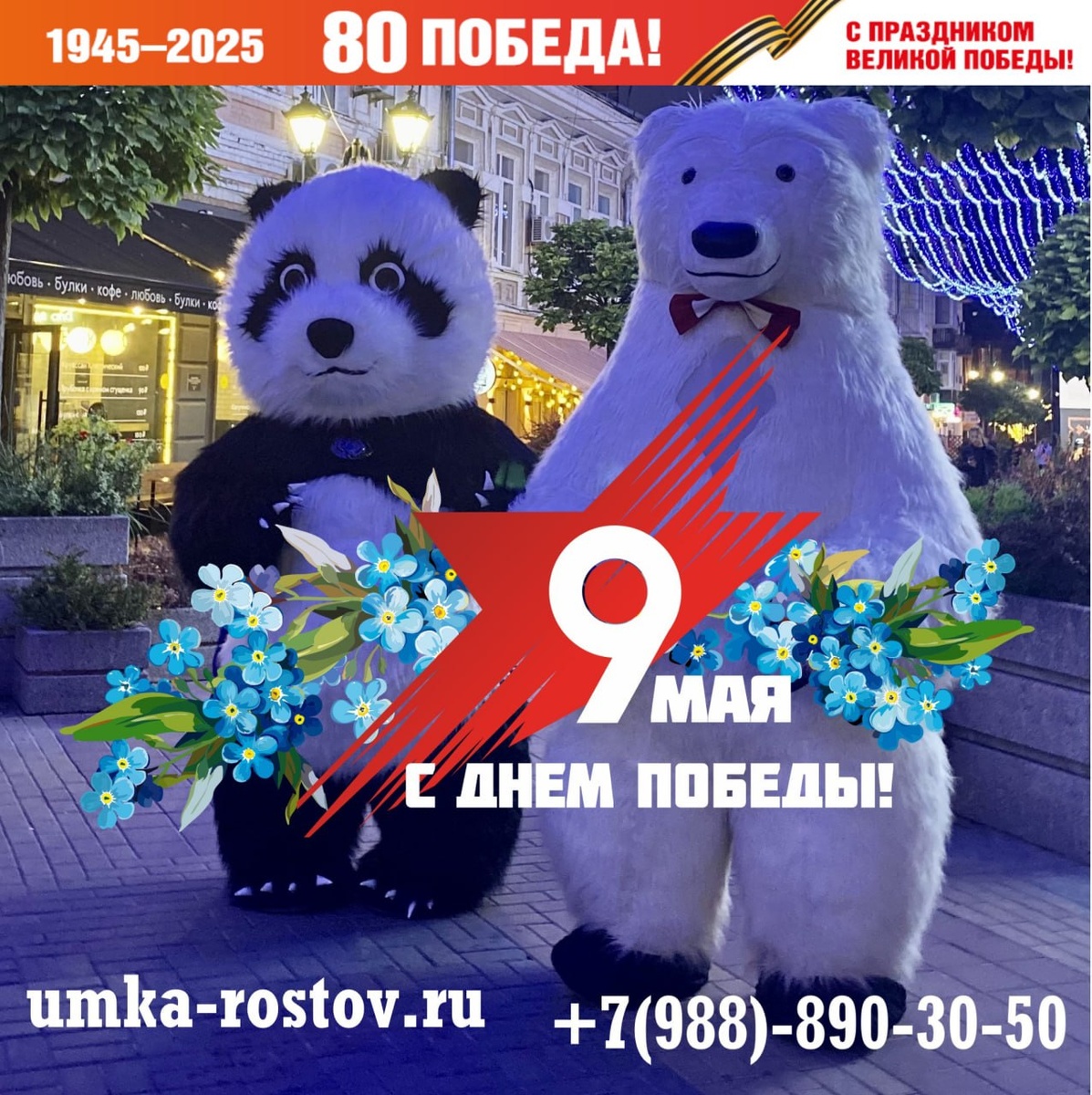 Милый мишка Умка и красавчик панда Амиго поздравляют всех с наступающими праздниками! #rostov #rnd #9may #9Мая #деньпобеды #победа #праздник