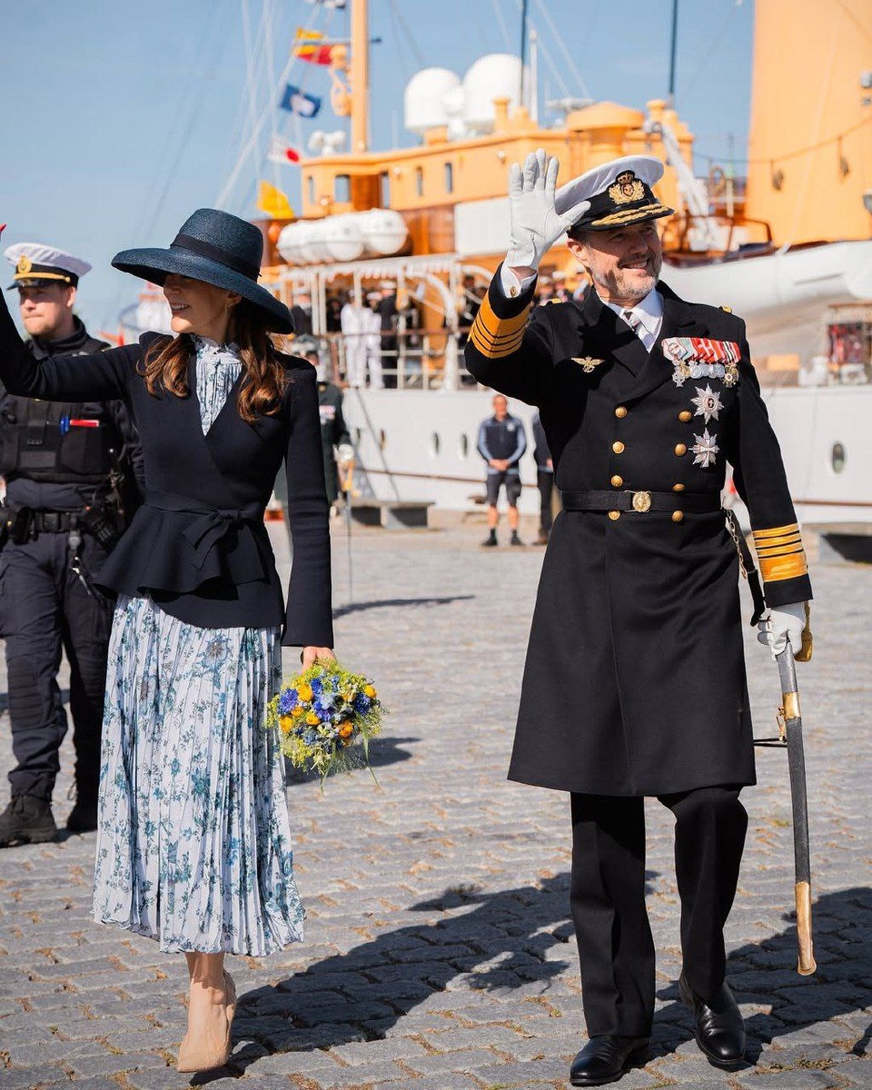 🇩🇰 Король Фредерик и королева Мэри на яхте "Даннеброг" отправились в замок Кронберг, где прошел прием для ООН. На Мэри платье от Erdem (кстати говоря, на Софи вчера было тоже от Erdem)