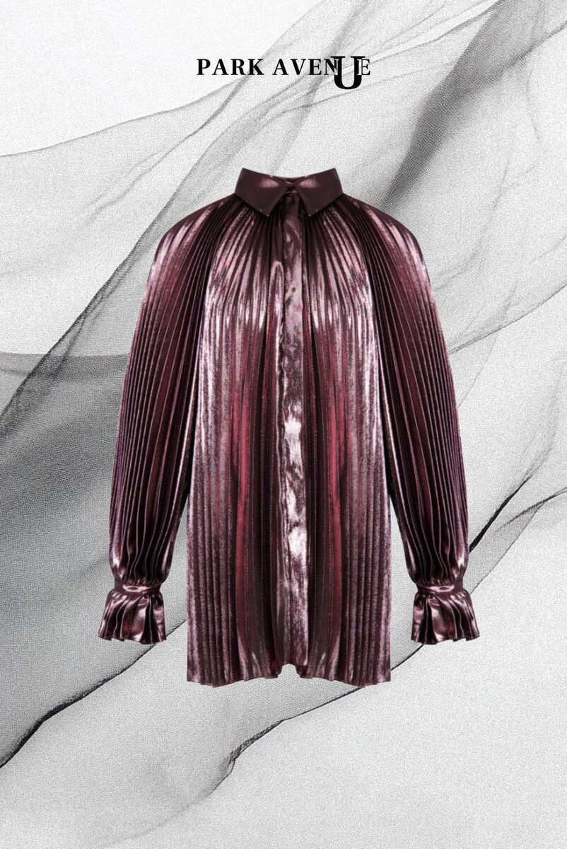 Иногда весь образ строится вокруг одной вещи. Не самой яркой — самой точной. ⏺ Тёмно-фиолетовая рубашка, выполненная в технике гофре, — как движение света по ткани. Металлизированный шёлк задаёт темп, подчёркивает линию, собирает внимание. Глубокий цвет, фактурный ритм, рукав с мягкой архитектурой. Такую модель легко представить в графичном сочетании: кожаные шорты, сапоги на каблуке, минимум дополнений. Идеальный баланс между эффектом и выверенностью. Рассматривать такие вещи хочется медленно. В них форма работает на ощущение. Уже догадываетесь, кто создал эту рубашку? Ответ: Alberta Ferretti