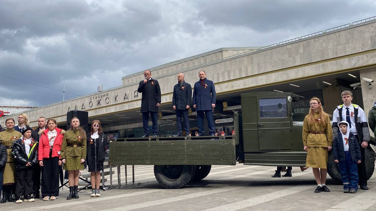 Спектакль-концерт в честь Дня Победы прошёл перед вестибюлем станции метро «Ладожская