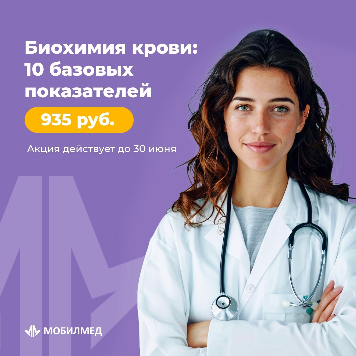 Проверьте качество работы 10 важнейших маркеров здоровья организма всего за 935 рублей. А если вы хотите сэкономить еще и время, то записывайтесь предварительно на нашем сайте: Акция: 50.00.004 Биохимический анализ крови, базовый https://www.mobil-med.org/analysis/biokhimicheskiy-analiz-50-00-004/