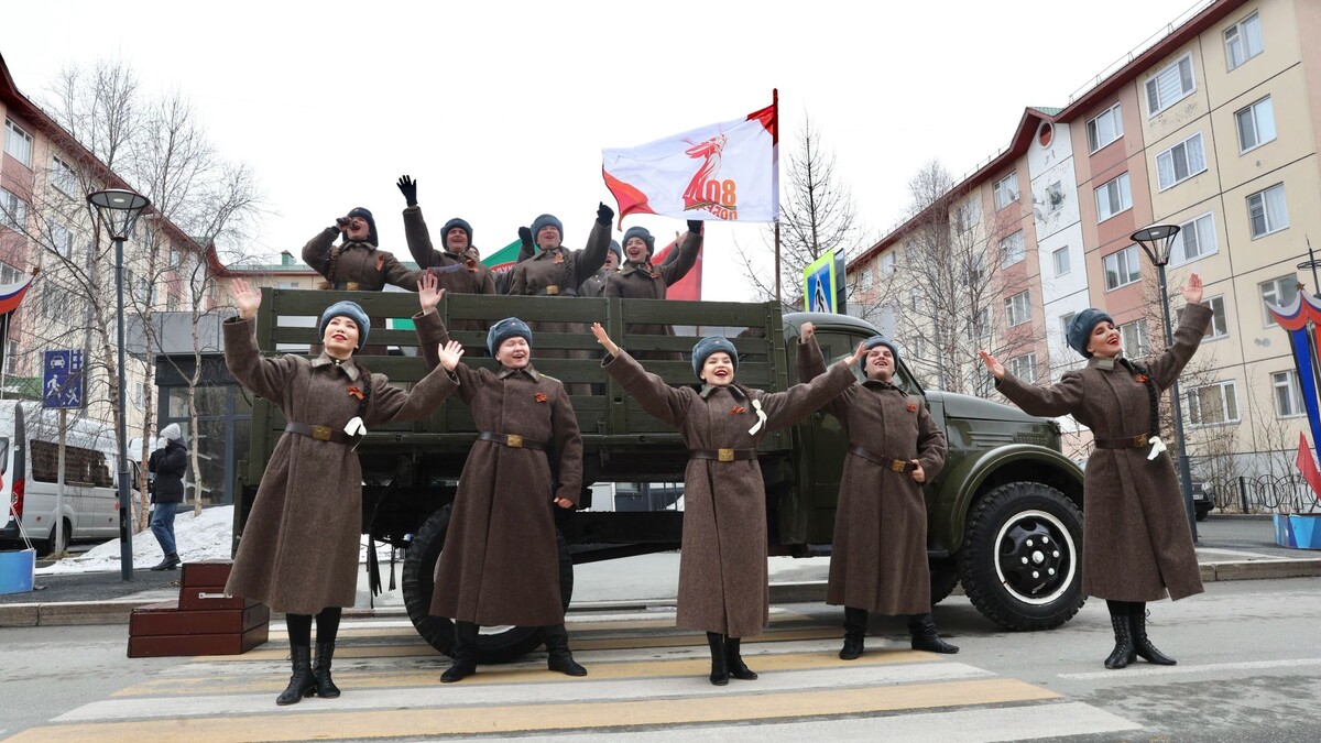 Артисты устроили концерт под окнами единственного ветерана Великой Отечественной войны в Салехарде. Они исполнили песни военных лет и поблагодарили Николая Шакурова за подвиг, сообщил «Ямал-Медиа». «В преддверии дня Победы в Салехарде под окнами единственного в городе ветерана Великой Отечественной войны дали праздничный концерт. Артисты фронтовой бригады исполняли песни военных лет, тем самым поздравляя и благодаря героя за его подвиг, смелость и бесстрашие», — говорится в сообщении. Видео: Мария Абакарова / «Ямал-Медиа» Николай Шакуров призван на защиту Родины в 17 лет. После прохождения курса молодого бойца он был зачислен в 618-й стрелковый полк третьего Белорусского фронта. Ямалец стал одним из участников наступательной операции «Багратион» по освобождению Беларуси. За боевые заслуги Николай Шакуров награжден орденом Отечественной войны II степени, медалями «За отвагу», «За победу над Германией в Великой Отечественной войне 1941–1945 годов». По улицам Ноябрьска начал курсировать а