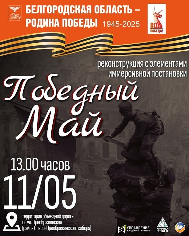 В Губкине состоится реконструкция боя времён Великой Отечественной войны Мероприятие проводится при поддержке благотворительного фонда «Поколение». В этом году вся страна отмечает 80-летие Победы. В честь этой знаменательной даты в Губкине пройдёт уникальное событие – историческая реконструкция боевого сражения времен Великой Отечественной войны «Победный май».