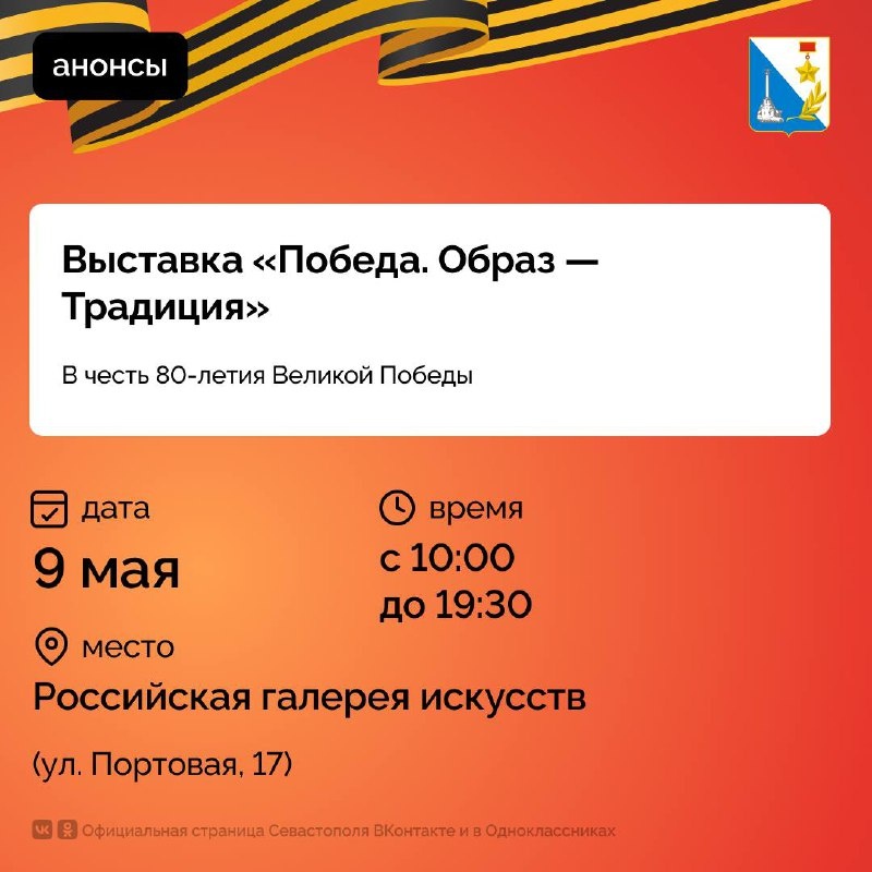 9 мая вход на выставку «Победа. Образ — Традиция» в Российской галерее искусств будет бесплатным