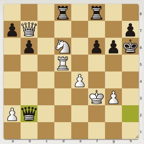 Белым в пору сдаться, однако белые начинают и выигрывают.