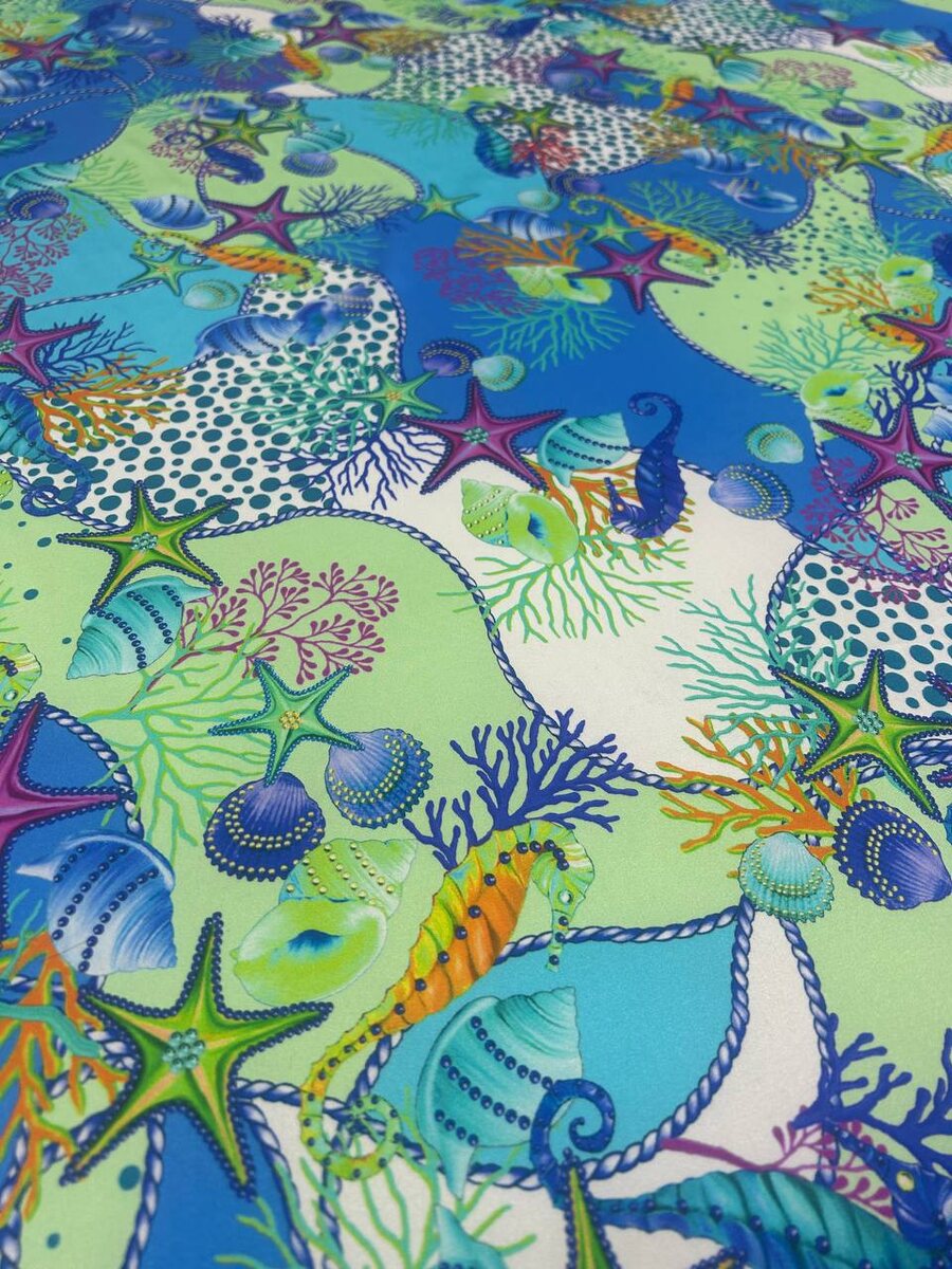 🇮🇹 Шикарный атласный шелк с эластаном 💗 Атласный шелк яркий многоцветный с принтом на морскую тематику, сразу хочется лето)) Для летней блузки с короткими и длинными рукавами, рубашки, платья,юбки короткой и длинной, сарафана 🥰. Состав: шелк 95%, эластан 5% Ширина: 135 см Цена за метр: 7400₽ ❗️Заказать, спросить, подобрать нажимаем в WhatsApp 👇🏼 https://wa.me/79251001222 🤗 Ждем Вас ежедневно по адресу: г. Москва, ул. Усиевича, д. 16