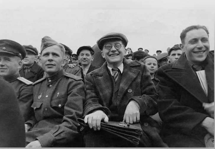 Между тем, он стал мировой знаменитостью и героем кинохроники военного времени. Вот здесь он рассказывает о своей симфонии и играет фрагмент из первой части 👇