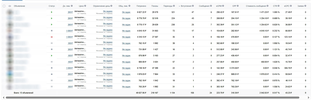 О ПРОЕКТЕ Агентство коммерческой недвижимости в Казани. ЦЕЛЬ РАБОТЫ Нужны были целевые заявки. ИСХОДНЫЕ ДАННЫЕ Сообщество было уже с наработанной базой подписчиков и оформлением. Данная ниша непростая, поэтому здесь требовалась проработанная контентная воронка. Хотите упаковать свое сообщество? Переходите по ссылке: https://vk.me/xcreativ_lab ПОДГОТОВИТЕЛЬНЫЙ ЭТАП Собрали прямых конкурентов. Собрали смежных конкурентов. Пересекли их с ключевыми запросами. Использовали скрытые интересы в старом кабинете. В качестве креативов использовали фото и видео нашего заказчика. Видео с экспертом. ЗАПУСК После тестов, отключили не эффективные объявления. Хотите анализ вашей ниши? Переходите по ссылке и пишите «таргет» https://vk.me/xcreativ_lab РЕЗУЛЬТАТЫ За 30 дней работы рекламного кабинета мы потратили 49.027р и получили: • 219067 показов • 1134 кликов • 24 заявки из рекламного кабинета • 158 подписчиков из рекламного кабинета Хотите получать первые продажи? Переходите по ссылке и пишите «тарг