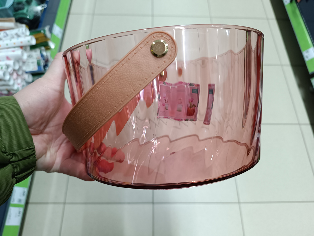Приветствую! Большой завоз был, я снимала из двух магазинов с вечера и с утра, так что скомпоную из двух походов в магазины. А сегодня к вечеру прибудет следующая машина в Фикс Прайс, я смогу уже завтра съездить. Ну, и по порядку покажу, как снимала. Для интерьера кашпо типа стеклянных, но это прозрачный пластик с ремешком. Очень похожие были, форма кстати. была. кажется, чуть другой. И рифлений тоже. Здесь узоры боковые слегка волнистые а так и цвета с последней коллекции. Стенки не очень толстые. Вроде с разворота другие товары уже поступили и я показала. материал тут описан на этикетке, название кашпо интересно - ГРАСЛАНД. Странное незнакомое слово. Зеленый с таким же цветом ремешка. В двух магазинах смотрела, были только розовые и зеленые. Вроде должен быть еще третий цвет, но не нашла либо не распаковали еще. А вот, те самые девочки, про которые кто-то написал в комментарии, я подумала, что это старые, а нет. посмотрела разворот этикетки и убедилась, что это из новой коллекц