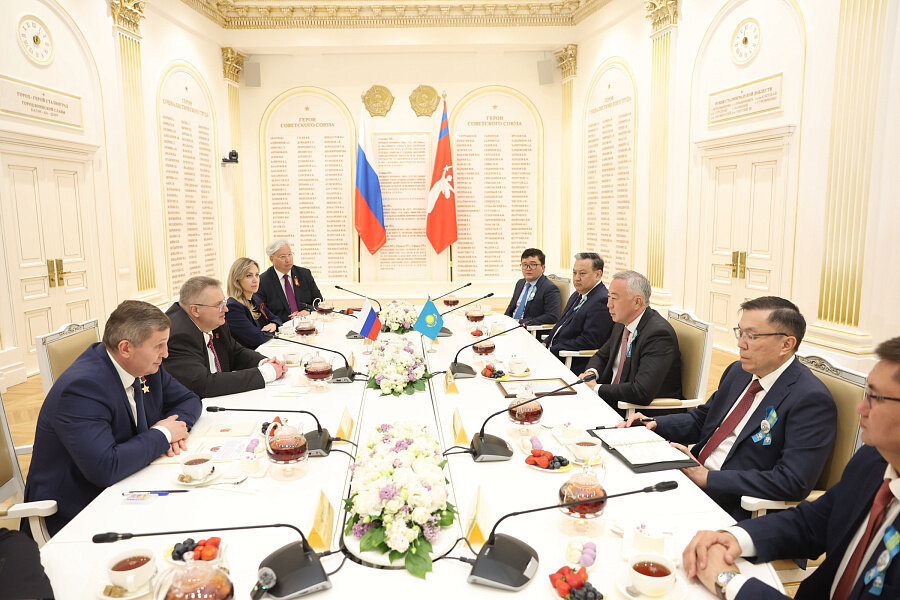 Встреча с делегацией Казахстана прошла в городе-герое Волгограде. Участники обсудили вопросы международного сотрудничества и сохранения исторической правды. До этого гости города почтили память защитников Сталинграда на Мамаевом кургане. Фото: администрация Волгоградской области В Волгограде прошла рабочая российско-казахстанская встреча. Ее участниками стали председатель Правительства России Алексей Оверчук, заместитель премьер-министра – министр национальной экономики Республики Казахстан Серик Жумангарин, а также губернатор Волгоградской области Андрей Бочаров. Встреча состоялась Зале воинской и трудовой славы Волгоградской области. Были рассмотрены вопросы экономического и гуманитарного взаимодействия, сохранения исторической правды и памяти. Перед этим участники на Мамаевом кургане почтили память павших воинов, сражавшихся за Сталинград. Глава региона поздравил всех с наступающим Днем Победы и поблагодарил за вклад в сохранение исторической памяти о Великой Отечественной войне. Ка