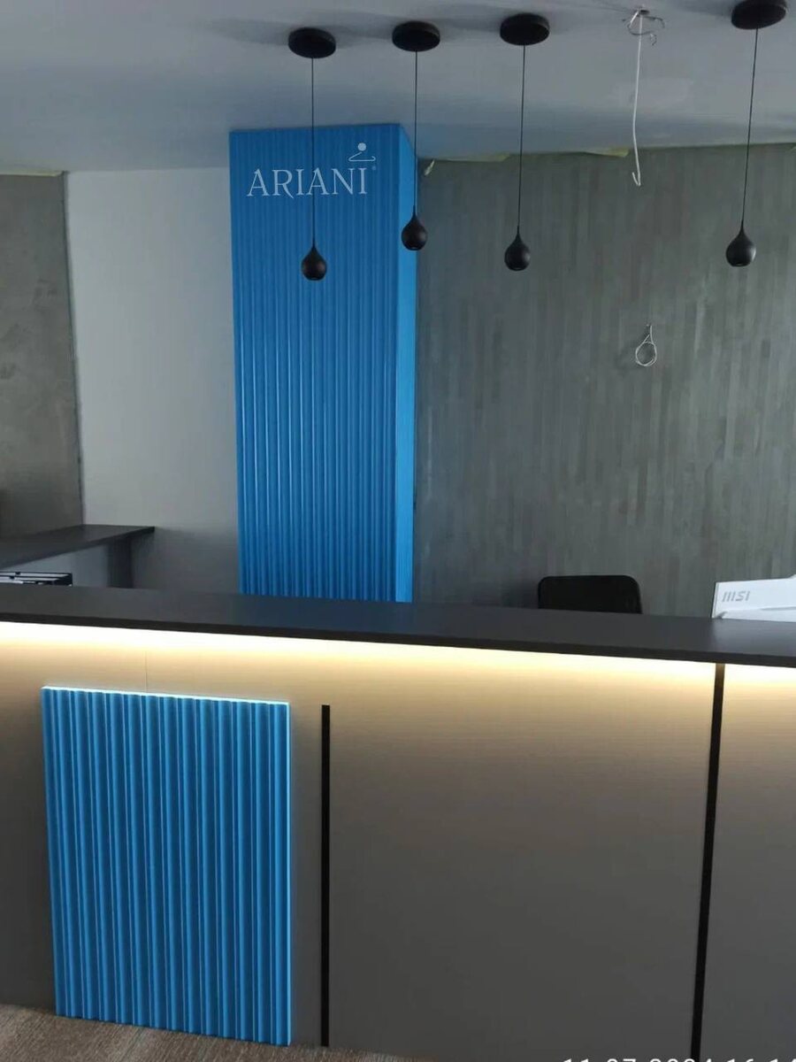 В этом интерьере мы использовали рельефные панели с финишем в насыщенном синем оттенке — они стали не просто акцентом, а логичным продолжением архитектуры помещения. Гармония вертикалей и мягкая подсветка рецепции создают визуальную глубину, не перегружая пространство.