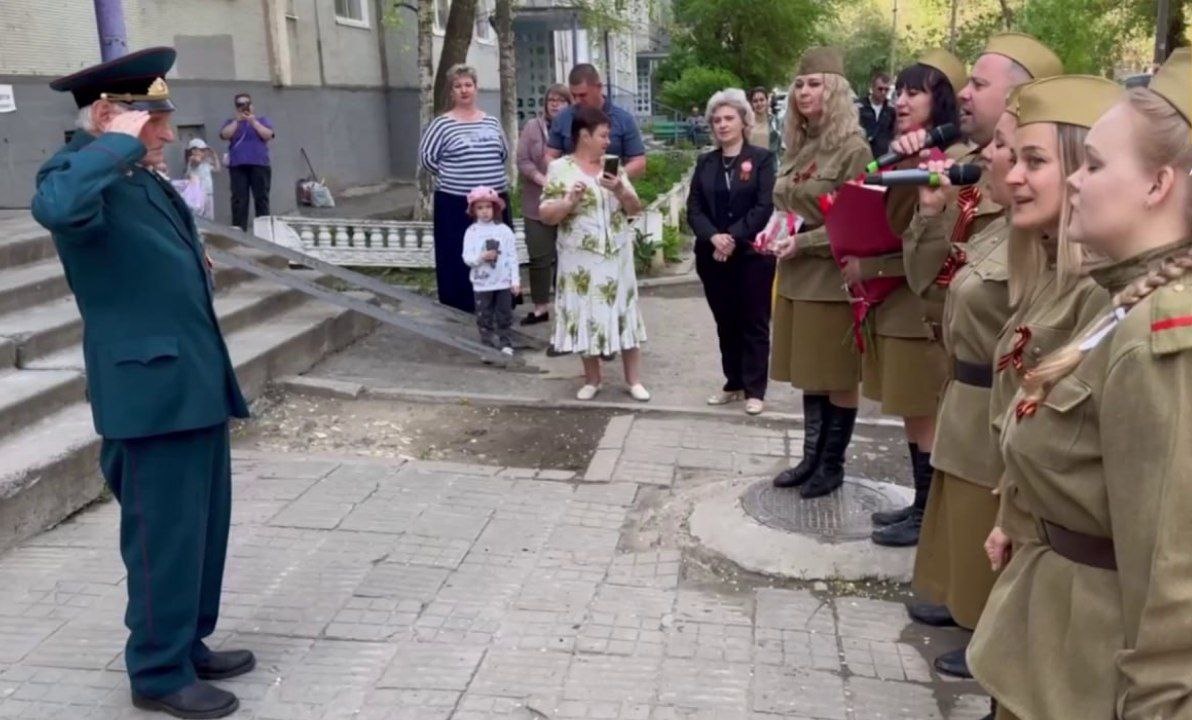 В Волгограде проходят праздничные мероприятия, посвященные 80-летию Великой Победы. Самые теплые слова и подарки в эти дни получают ветераны. Фото: пресс-служба администрации Волгограда В Волгограде артисты устроили концерты для ветеранов Великой Отечественной войны. Музыкальный подарок исполнили прямо во дворах домов. Участие в мероприятии приняли артисты ДК Тракторозаводского района. В форме военных лет молодые люди исполнили одну из самых известных песен – «День Победы». Смотрим «Вести. Волгоград»: smotrim.ru/Volgograd Подписывайтесь на наши страницы в соцсетях: Telegram, ВКонтакте, Одноклассники, Дзен
