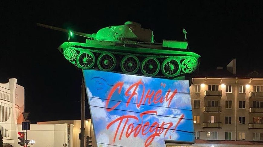 📸Знаменитый памятник-танк в центре Гродно оборудовали праздничной подсветкой