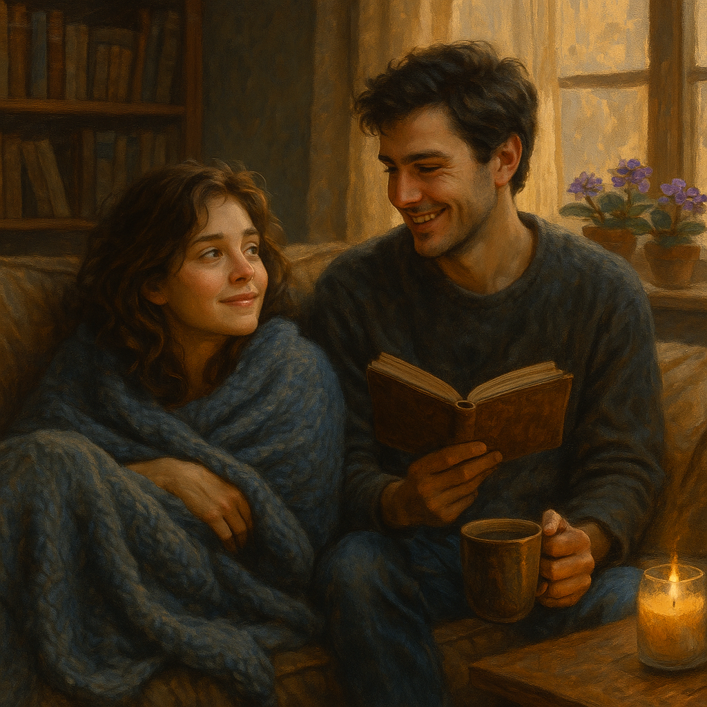Они продолжили смотреть, но Катя чувствовала, как глаза слипаются. Она прислонилась к дивану, потом к плечу Артёма, и не заметила, как заснула. Её дыхание стало ровным, а рука упала на плед. Артём замер, глядя на неё. Он мог бы встать, уйти, как сделал бы раньше, когда страх брал верх. Но вместо этого он осторожно поправил плед, укрывая её, и остался. Фильм закончился, экран погас, а он всё сидел, слушая её дыхание и чувствуя, как в груди разливается тепло. Впервые он не боялся.