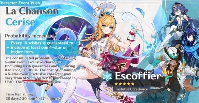 После выхода обновления 5.6 в Genshin Impact для игроков из США стала отображаться примерная стоимость получения персонажей из баннеров. Нет гарантии, что герой будет получен следующей же прокруткой, поэтому обозначаются минимальная и максимальная стоимость. Например, для получения Эскофье придётся потратить от 1,98 до 475,2 доллара. Нововведения связаны с соглашением разработчиков игры и Федеральной торговой комиссии США, по условиям которого авторы Genshin Impact обязались раскрыть точные шансы появления предметов из баннеров и реализовать ряд других функций.