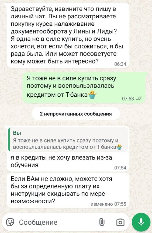 📌 Когда очень хочется ✉️ «Здравствуйте, извините, что в личку… Может если, вы купите курс и будете мне потом инструкции пересылать за небольшую плату?» Это реальное сообщение. Их приходит много. Мы понимаем: хочется. Очень. Но — давайте честно — пересылка чужих материалов — это просто кража. ➡️Да, даже «за символическую плату». ➡️Да, даже если вы «тоже бухгалтер и просто очень интересно». Мы создаём курсы, в которые вложено много месяцев труда, кейсов, слез, регламентов, шуток, примеров, разборов и поддержки. И мы очень рады, что они вам нужны. Но если курс вам сейчас не по карману — не надо: ✔️ писать ученикам с просьбами «скинуть материалы» ✔️ предлагать «скинуться на покупку» ✔️ ждать, что кто-то будет пересылать инструкции «по мере возможности» Это и неудобно, и неэтично, и просто не по-нашему. Вместо этого — напишите нам. Мы честно расскажем про: — внутреннюю рассрочку — участие в следующем потоке — варианты оплаты для участников клуба или условия банков — и что можно сде