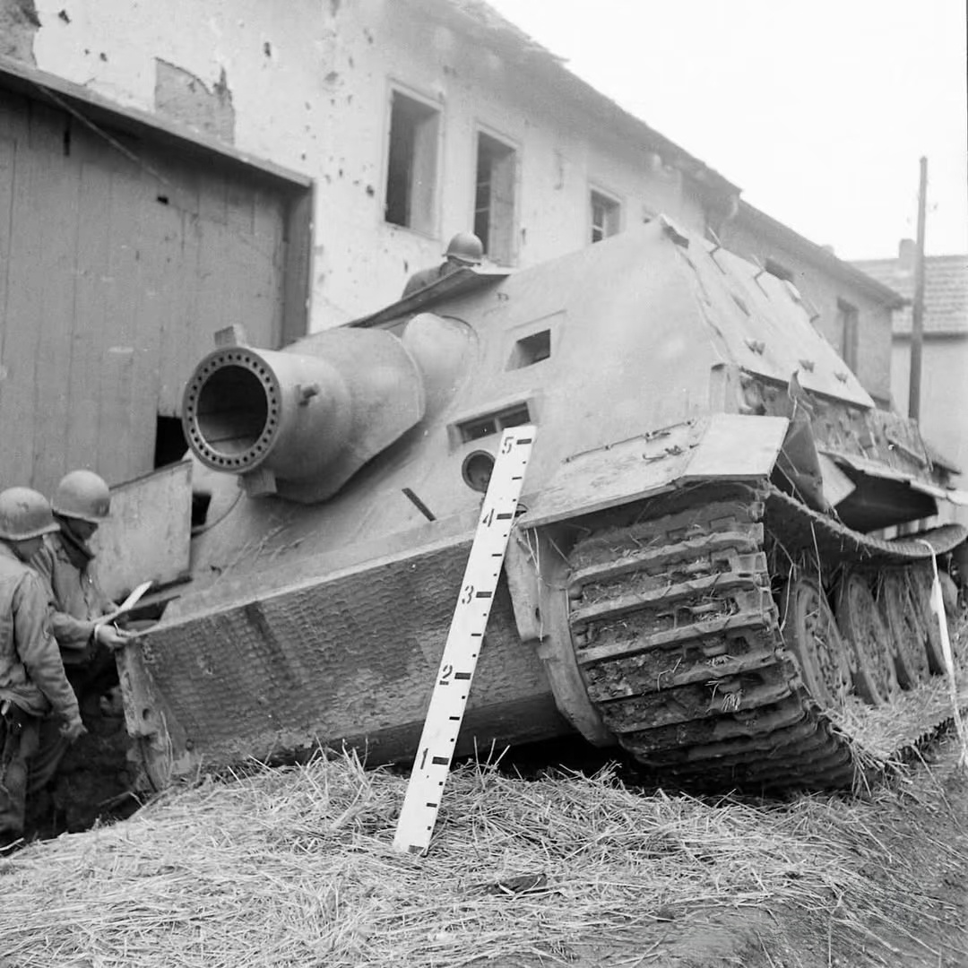 На фото — группа военных с неподдельным интересом разглядывает трофейного монстра: немецкий Штурмтигр (Sturmmörser Tiger), одну из самых необычных и пугающих машин Второй мировой. Обратите внимание на этот короткий, но невероятно широкий ствол — это 380-мм мортира, созданная не для дуэлей с танками, а для сокрушения целых зданий. Представьте: вместо снарядов — реактивные мины весом под 350 кг, способные превратить укреплённую позицию в груду щебня за один выстрел. Тактика проста — подъехал, накрыл квартал, отступил. Созданный для уличных боёв (например, подавления Варшавского восстания), Штурмтигр был настоящим «богом войны» в железе. Но гигантомания сыграла злую шутку: махина весом в 65 тонн, с экипажем из 7 человек, оказалась слишком медленной, сложной и дорогой. Всего выпустили 18 таких монстров. А теперь вопрос: как вы думаете, что творилось в головах у солдат, впервые увидевших эту «чудо-пушку» на поле боя? И главное — как её вообще удалось захватить? P.S. Если вдруг ваш со