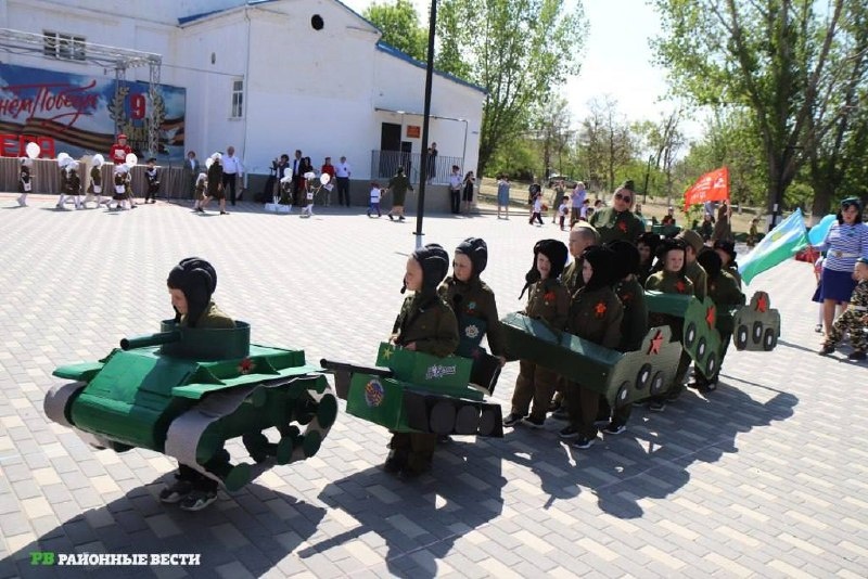 В Ростовской области детсады устроили парад с танками, моряками и кавалерией в честь Победы