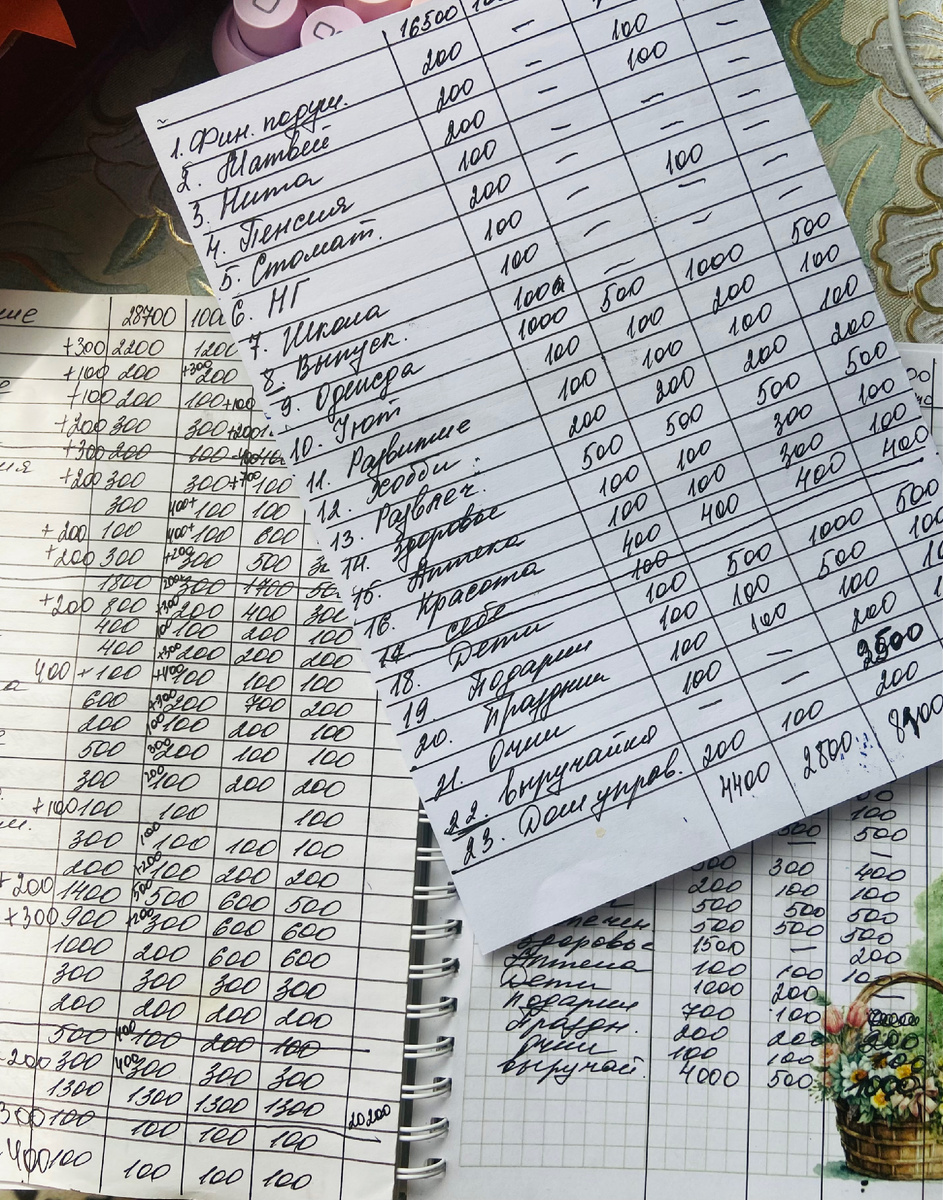 Со вчерашнего вечера сижу ломаю голову 🤔 с таблицей по которой планирую куда что распределить 🤦♀️ доход упал на приличную для меня сумму в 14300😳 исписала просто все что можно было 😂🥹 Как говорится и смешно и плакать хочется …даже ручка не выдержала 🫢вся измазалась ….. Обычно у меня были распределения раз в неделю …(4 раза в месяц ) сейчас пробовала два раза . И три . Крутила вертела суммы то так , то эток 😃 все просто не то …. И вот уже время 15:40 я все таки к чему то пришла 🙇🏼♀️мозг просто взрывается …. Я всегда была противником в том чтоб убрать конверты ✉️ так как считаю уберешь и ничего все ровно не увидишь 👀 А так хоть по чуть чуть но копиться …. И в итоге я убрала на ВРЕМЯ 🕕 пока не понимаю и не знаю 🤷♀️ что из этого получиться ….. Дальше будет видно ☹️ Деньги я перенесла в конверт ТЕХНИКА так же убрала конверт хотелки ,себе ,ремонт, мелочи вышло около 9 конвертов …. накопительный 💜уменьшился только в категориях … деньги не трогала …. так же планирую пока