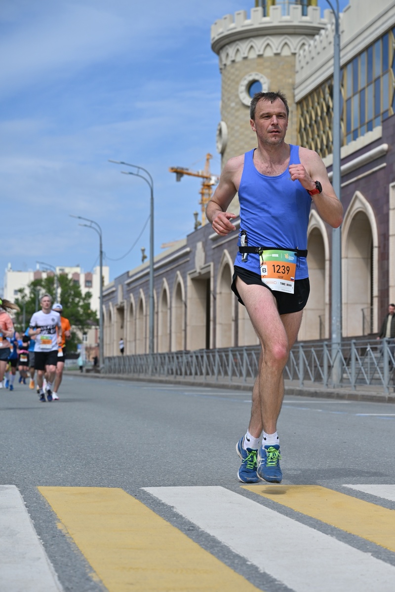 С Полумарафоном мы добежали по широченной улице до АК Барс Арены, пробежали по мосту Миллениум, а потом по набережной реки Казанки. Виды удивительные и красивые. Младшой болтал без умолку. Посмотрите сюда. Тут аккуратней. Берегите ноги! Тут узко. А тут покричите в туннеле! И вроде неплохо всё. Было ощущение лёгкой прогулки. Ну и хорошо, подумал я, штампуя километры по 4:25 и всё еще сдерживая внутренних коней.