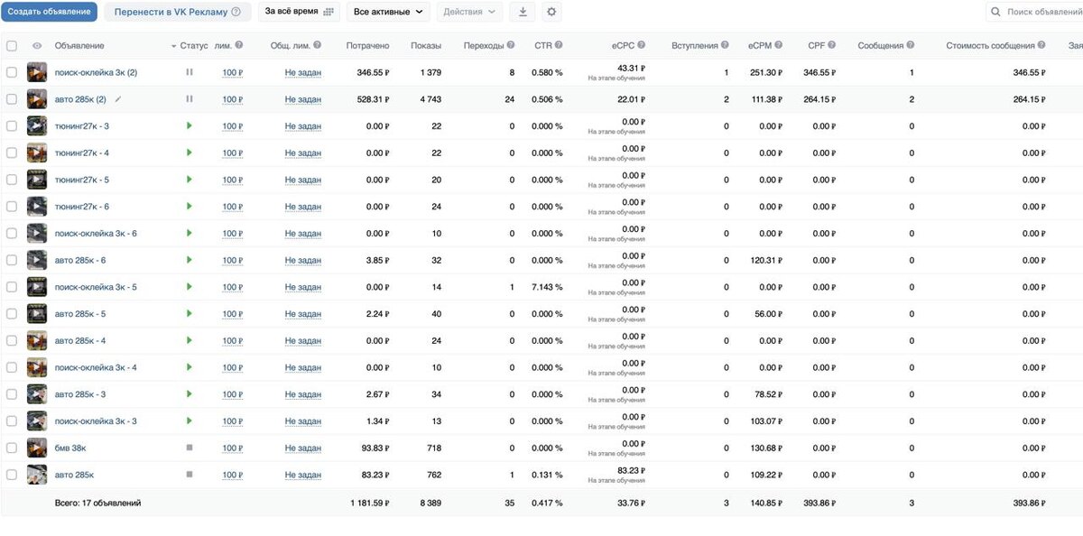 Вписался я в одну движуху с партнерским маркетингом Делаю рекламу для детейлинг центра. С меня маркетинг + бюджет. С партнера продажа/допродажа + оказание услуги - Залил несколько крео в авито по ключам с оплатой за заявку - Залил вк немного трафика По ощущениям авито мертво тк там запросов кот наплакал. подозреваю, что тут надо сразу всеми услугами ДЦ заливаться + масштабироваться по названиям авто И так далее А вот вк сразу начал радовать и дал 3 заявки. Рассчитываю стоимость лида держать до 500р Заявки пока что такие себе (бюджетные авто) но сам факт того, что есть тут движение - уже радует Сегодня залился сразу с 4 новых крео + аудитории перемешал. Видео процесс конечно лучше зашел чем просто фотки (во всех авто темах моих клиентов видео лучше идет: Детейлинг, авто из кореи, подбор и тд) В общем продолжаю эксперементы. Писать дальше про это направление?