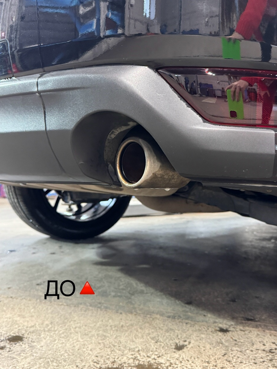 Полностью изготовили заднюю часть: так как клиент хотел изменить звучание выхлопа, заменили банку и добавили немного звука.