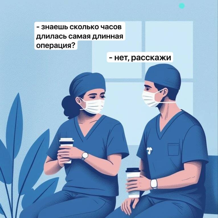 Знаете, сколько длилась самая долгая операция в истории медицины? #ординаторская: удивительные истории из медицины. Рубрика, благодаря которой вам будет что обсудить в ординаторской Пока вы думаете, расскажем, что это была за операция. В феврале 1951 года в Чикаго была проведена операция по удалению гигантской кистозной опухоли яичника у 58-летней Гертруды Левандовски Пациентка страдала от сердечных проблем, и резкое удаление опухоли могло привести к смертельному исходу. Поэтому врачи приняли решение постепенно дренировать кисту, чтобы избежать резкого падения давления. В течение четырёх дней медики медленно удаляли жидкость из кисты, а затем полностью удалили опухоль. До операции женщина весила около 280 кг, после — около 140 кг. ⏱️ Итак, сколько длилась эта операция? Операция продолжалась 96 часов — четыре дня без перерыва. Это одна из самых продолжительных хирургических процедур, когда-либо зафиксированных