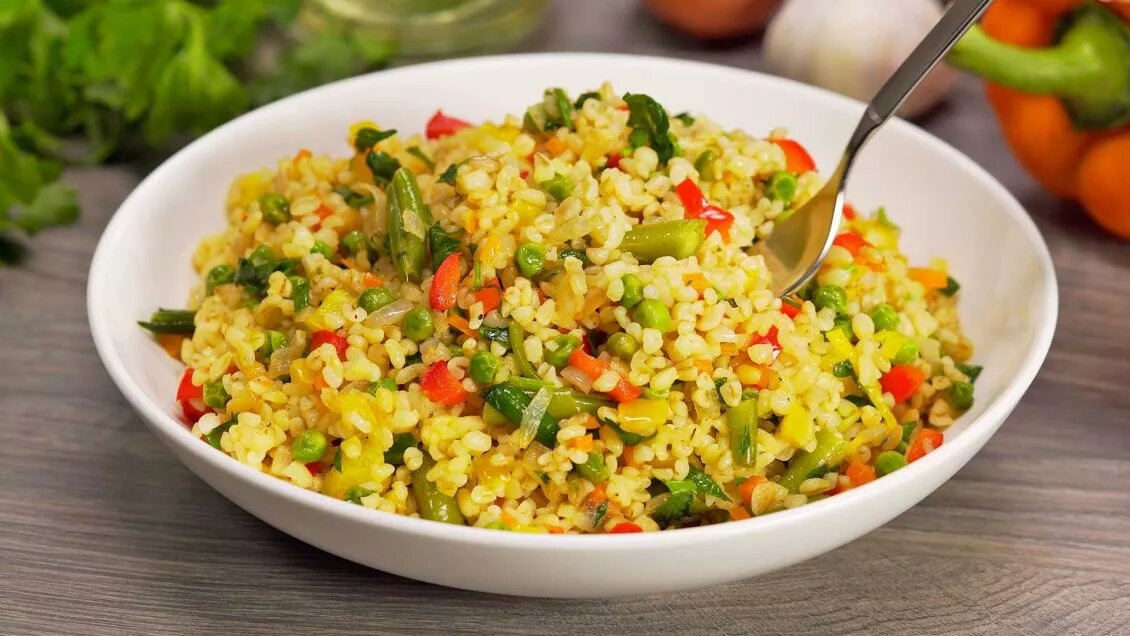 Подавайте булгур с овощами в качестве основного блюда или гарнира. К нему идеально подойдет мясо, курица или рыба. Время приготовления: 45 минут Количество порций: 6 Калорийность: 330 kCal Вам понадобятся ___ Если статья понравилась — поставьте лайк 👍