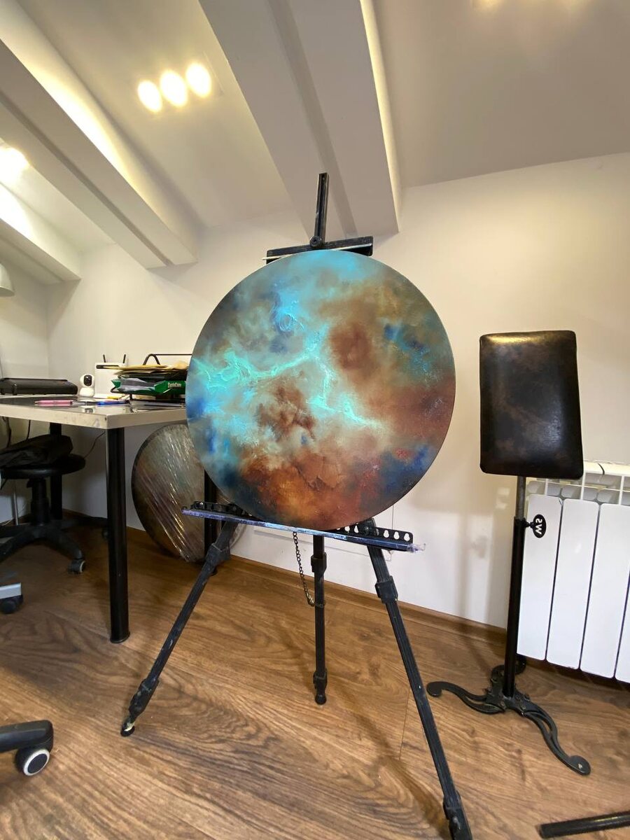 Новая работа - «Туманность 1295», диаметр 50. Холст, масло. Будет в раме конечно.