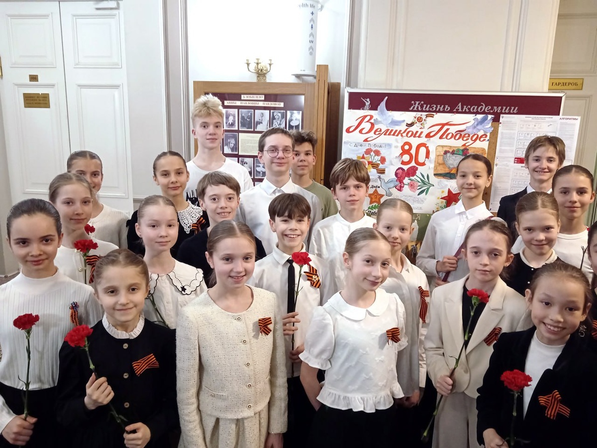 В эти праздничные дни в стенах Академии традиционным стало возложение цветов к «Уголкам памяти» ее воспитанниками. Празднично-патриотический маршрут стартовал от бюста первого профессора хореографии – Агриппины Яковлевны Вагановой, которая встретила известие о начале Великой Отечественной войны в Ленинграде, здесь же застала ее Блокада. Следующей точкой памятного маршрута стал «Блокадный» репетиционный зал – «3-низ», где ребята оставили красные гвоздики в честь силы воли и мужества своих сверстников из далеких 1942-1943 гг., что оттачивали здесь свое мастерство в дни блокады и дарили радость танца в составе госпитальных и фронтовых бригад. Завершился маршрут возле импровизированной Доски памяти. В этом году она посвящена монументам Великой Победы и нашим доблестным предшественникам – поколению победителей! Отдельные Доски памяти разместились и в разных классах – здесь ребята делятся рассказами о своих родственниках – свидетелях и участниках войны. Воспитанники Академии исследовали тем