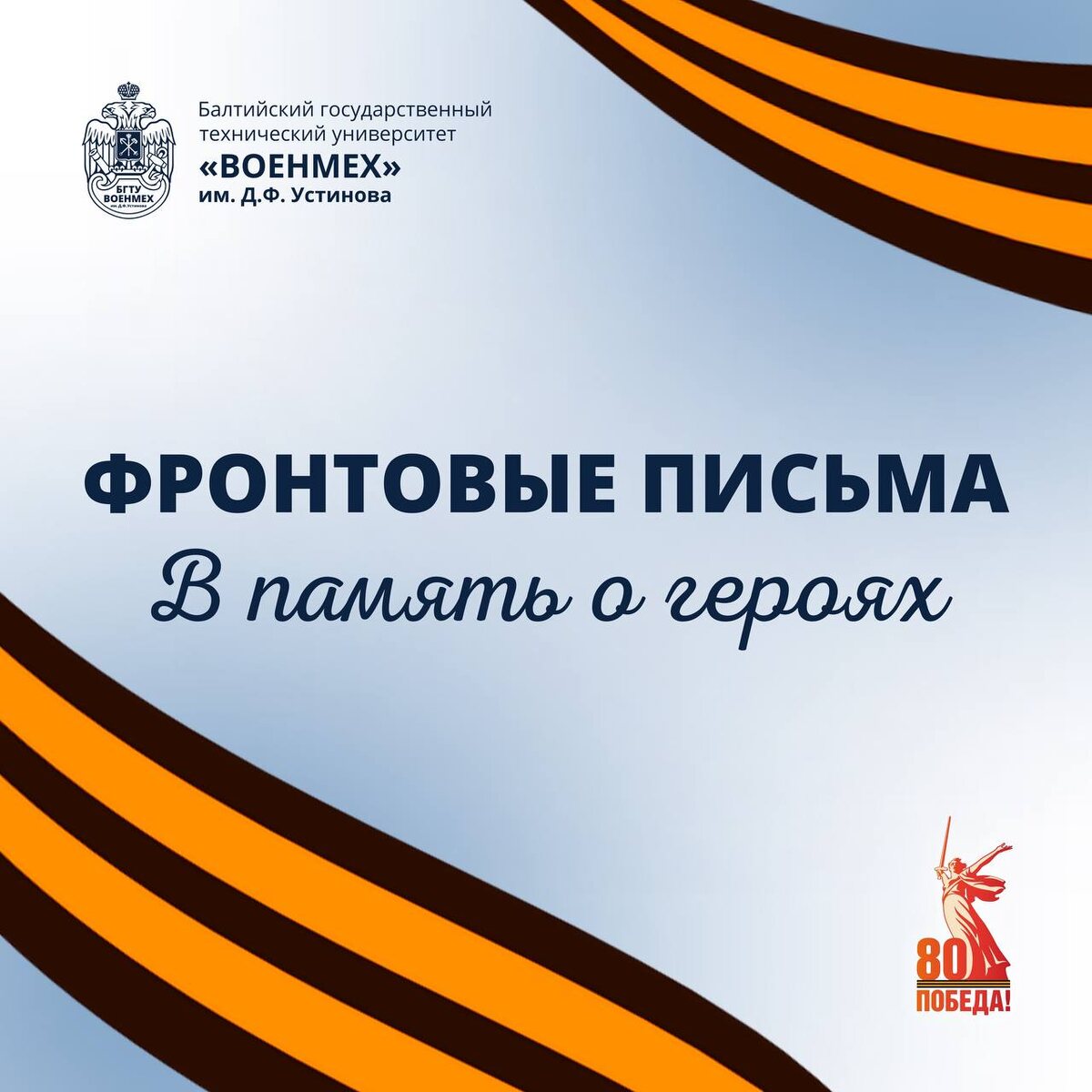 9 мая — день памяти, благодарности и гордости. Мы вспоминаем не только подвиг всей страны, но и личную историю Военмеха. Студенты, преподаватели и сотрудники университета уходили на фронт и даже там, среди боёв, писали письма своим близким, коллегам, друзьям. Эти строки — не просто свидетельства войны, это живая память.