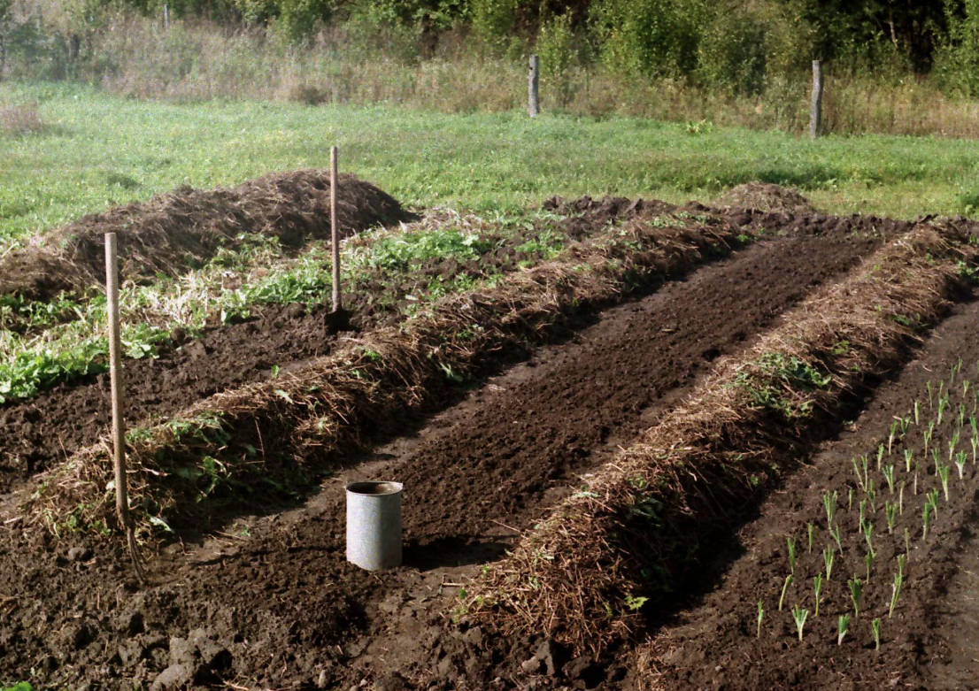 - Если весь участок — ровный, можно немного нарастить уровень грядок, сняв землю вокруг или насыпав землю на сами грядки.
